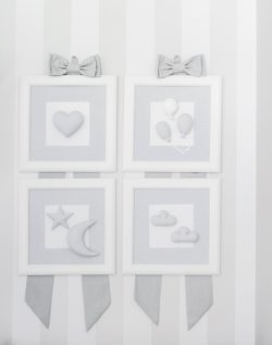 Wszystkie dodatki i dekoracje pochodzą z kolekcji Pure Grey. Są to obrazki, balony, kosze, lampy oraz uwielbiane przez naszych Klientów oryginalne dekoracyjne pluszaki w rozmiarze XXL: żyrafa i słoń.