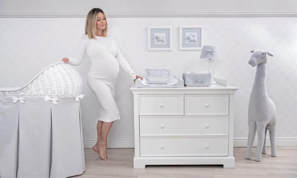 Wnętrze zostało utrzymane w ponadczasowej kolorystyce - w tonacji bieli i jasnej szarości. Małgosia wybrała klasyczny zestaw mebli Linii Francuskiej, do których dodała welurowe, miękkie tapicerowane meble, niezbędne każdej młodej mamie. W wyprawce nie mogło zabraknąć również łóżeczka mobilnego, które pozwala na wygodne przewożenie maleństwa po domowej przestrzeni.