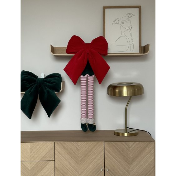 Spektakularna kokarda dekoracyjna w rozmiarze XL uszyta z weluru w kolorze zielonym.  Dzięki usztywnieniu kokarda zawsze utrzymuje perfekcyjny kształt.