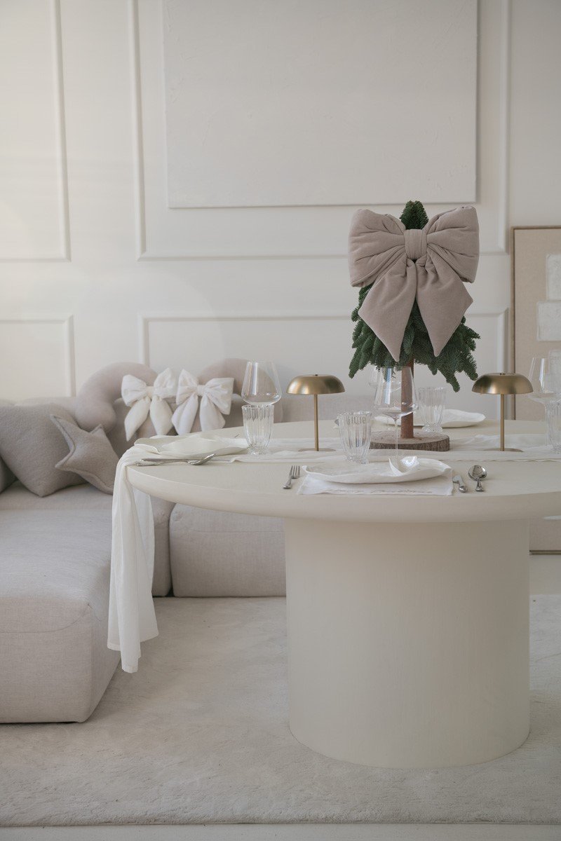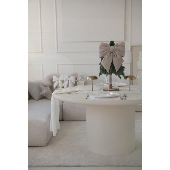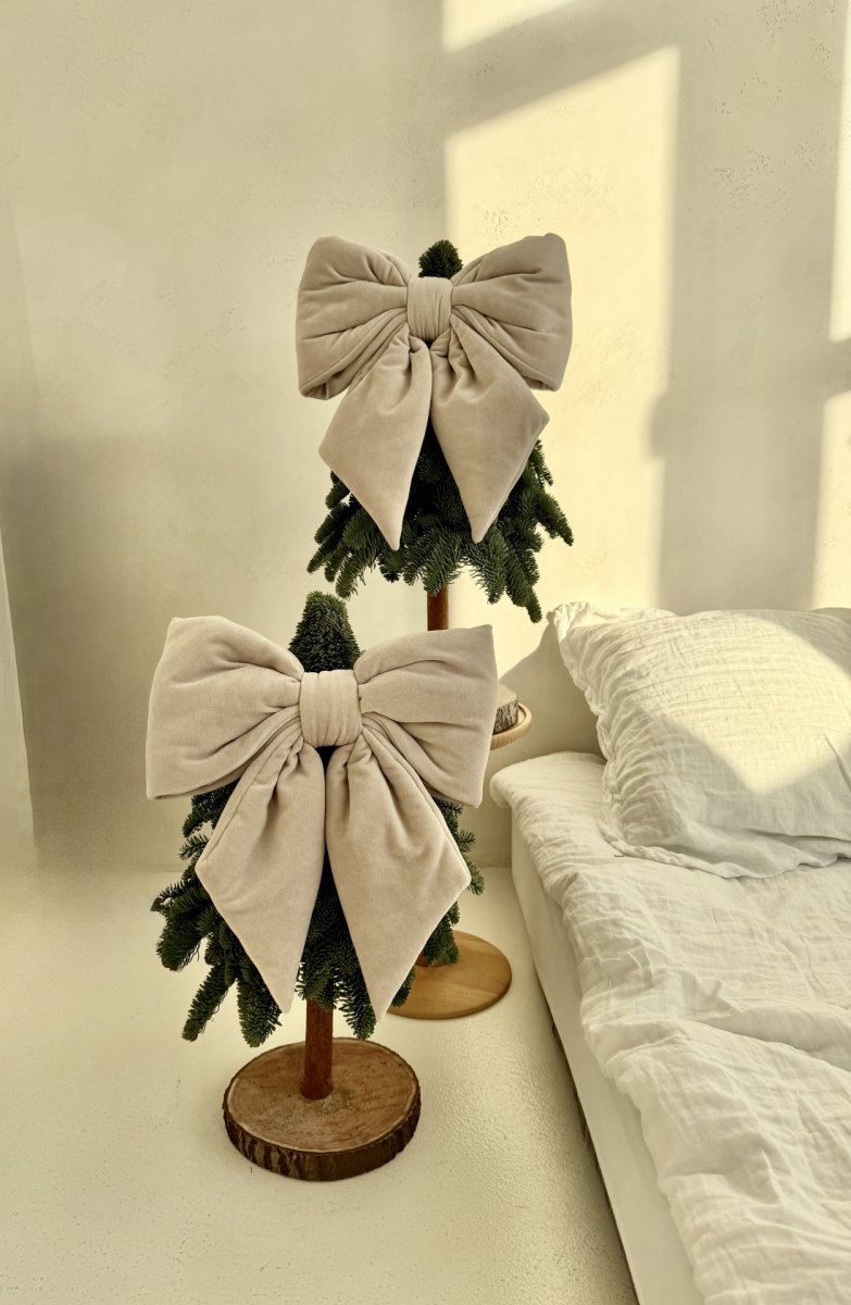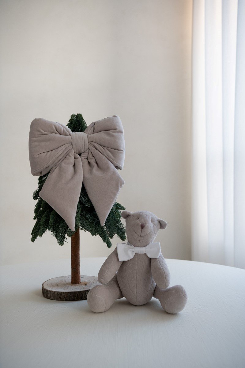 Wprowadź do swojego wnętrza odrobinę ponadczasowej elegancji dzięki wyjątkowej, welurowej kokardzie XL w subtelnym beżowym odcieniu. Miękki, szlachetny welur pięknie odbija światło, tworząc ciepły, przytulny klimat – idealny na świąteczny czas i nie tylko.