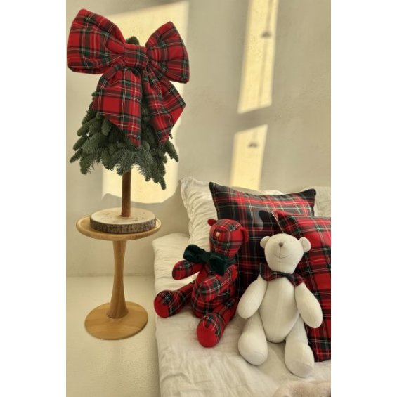 Miś świąteczny w kratę to klasyczna ozdoba, która nawiązuje do ponadczasowych, domowych dekoracji. Wykonany z miękkiego materiału w tradycyjny, czerwono-zielony wzór, emanuje ciepłem i świątecznym nastrojem. Jego prosta, przytulna forma oraz ponadczasowa krata sprawiają, że idealnie wpisuje się w dekoracje, które od lat goszczą w rodzinnych domach. Doskonały do ustawienia przy choince, na komodzie lub w dziecięcym pokoju, dodając wnętrzu odświętnego charakteru.