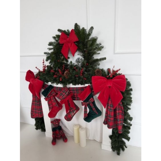 Zielona skarpeta świąteczna, wykonana z miękkiego weluru i ozdobiona uroczą kokardą w klasyczną czerwoną kratę, to elegancki dodatek wprowadzający do wnętrza prawdziwie bożonarodzeniowy klimat. Jej tradycyjny charakter i staranne wykończenie sprawiają, że pięknie prezentuje się przy kominku, na balustradzie czy w dziecięcym pokoju. Idealna na drobne upominki, tworzy spójną, harmonijną dekorację w połączeniu z innymi elementami świątecznymi utrzymanymi w klasycznym stylu.