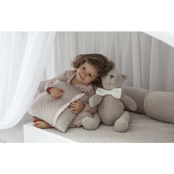 Piękna, welurowa pikowana narzuta, w odcieniu delikatnego beżu. Kapa jest lekko sztywna, co sprawia, że ładnie przylega do łóżka. Jej idealnym dopełnieniem będą poduszki z kolekcji Golden Sand oraz Pastel Chic. Przeznaczona do dużego łóżka dziecięcego 140 x 200 cm.