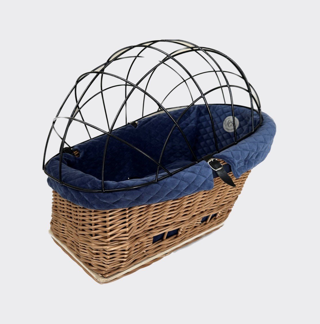 Niezwykle stylowy i funkcjonalny kosz rowerowy do transportu zwierząt montowany na bagażnik. Wyposażony w solidny uchwyt mocujący, kratkę zabezpieczającą, wielofunkcyjne obszycie oraz mięciutką poduszkę. Obszycie z poduszką zapewnia wygodę podróżowania i jednocześnie pełni funkcję torby podróżnej. Dla większego bezpieczeństwa, wewnątrz została przymocowana krótka smycz z karabińczykiem, do której możesz przypiąć obrożę psa. Uchwyt mocujący jest regulowany, dzięki czemu kosz pasuje do każdego bagażnika. Jego pokrętło pozwala na szybki montaż jak i demontaż koszyka. Kratka montowana trzema skórzanymi paskami. W każdej chwili można ją łatwo zdemontować i przewozić zwierzaka zapiętego smyczką.