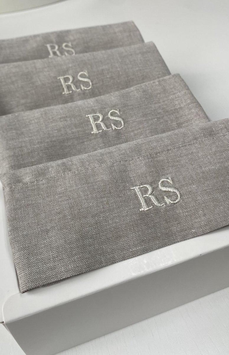 Tkaninowe serwetki to elegancka i stylowa dekoracja każdego stołu. Zestaw składa się z 4 szt beżowych serwetek z haftem uszytych z wysokiej jakości beżowej bawełny. Możliwość dokupienia pasujących opasek.