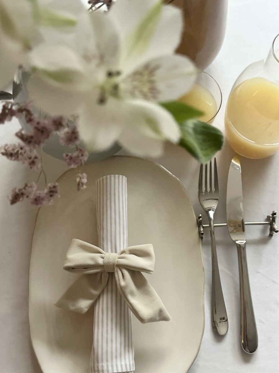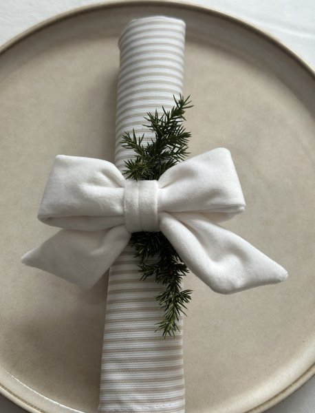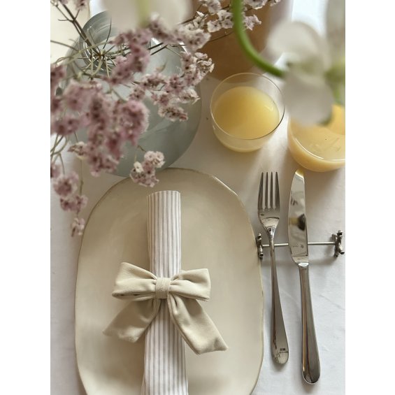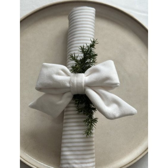 Tkaninowe serwetki to elegancka i stylowa dekoracja każdego stołu. Zestaw składa się z 4 szt serwetek uszytych z wysokiej jakości bawełny w biało-beżowe paseczki. Możliwość dokupienia pasujących opasek.