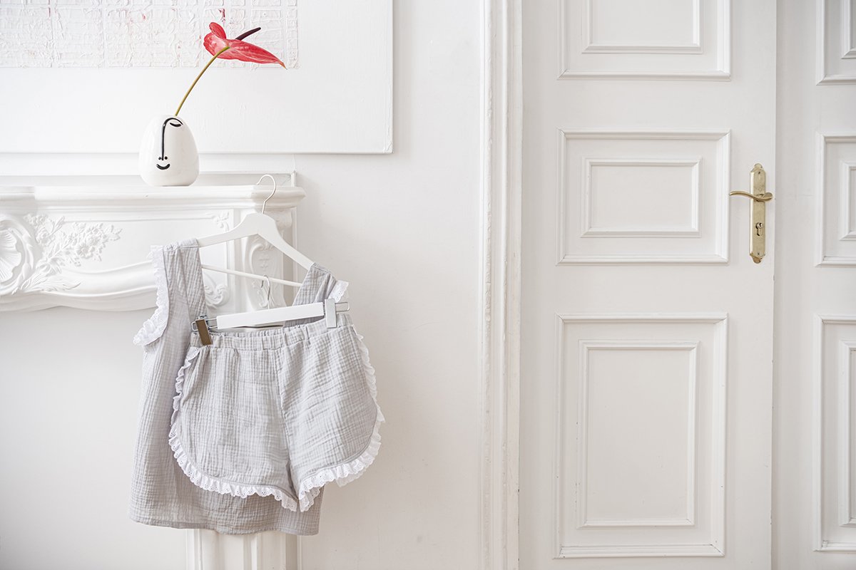 Piżamka muślinowa szara z koronką