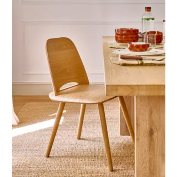 Lucien to eleganckie krzesło do jadalni z naturalnego dębu, z delikatnie wygiętym oparciem i siedziskiem dla większego komfortu. Otwarta część oparcia nadaje krzesłu lekkiego, nowoczesnego charakteru. Ponadczasowy design, który doskonale pasuje zarówno do wnętrz klasycznych, jak i nowoczesnych.