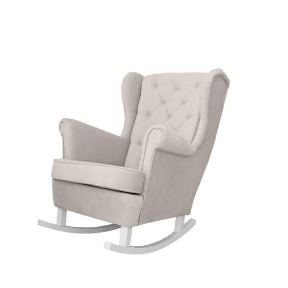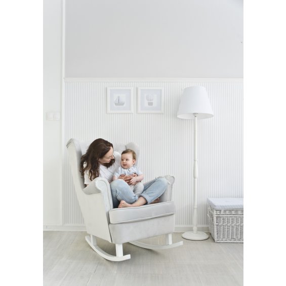 Duży, bardzo wygodny fotel bujany typu "uszak". Idealny dla karmiącej mamy ze względu na wysokie oparcie, podłokietniki, "uszy" pod głowę oraz płozy, które pozwalają się mamie bujać i tym samym uspokajać maluszka oraz pozwalać mu szybciej zasnąć. Dodatkową zaletą fotela jest obicie z wysokiej jakości tkaniny zmywanej. Fotel pasuje do każdego wnętrza- pokoju dziecięcego, salonu, sypialni i nie tylko.