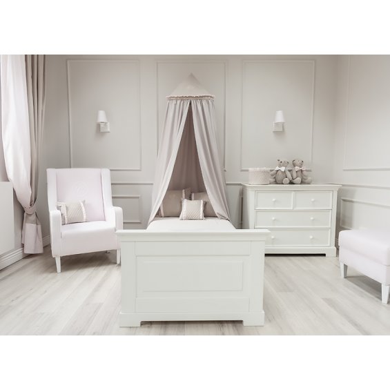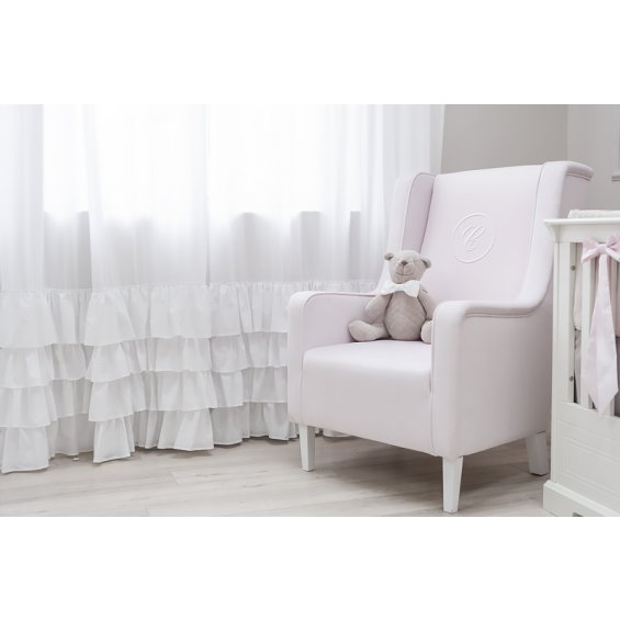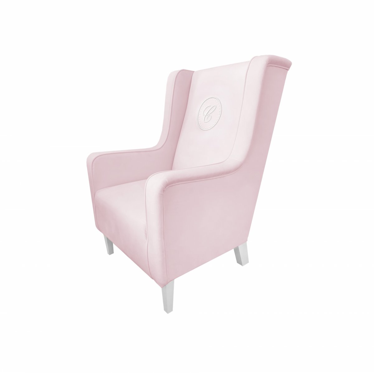 Duży, bardzo wygodny fotel typu "uszak" w stylu nowoczesnym, pokryty wysokiej jakości tkaniną zmywalną w kolorze pudrowego różu. Fotel ozdobiony jest szykowną białą kedrą oraz ekskluzywnym emblematem z literką "C". Ze względu na wysokie oparcie, "uszy" pod głowę oraz podłokietniki doceni go każda mama karmiąca. Fotel idealnie wpasuje do wnętrza - pokoju dziecięcego, salonu, sypialni i nie tylko.