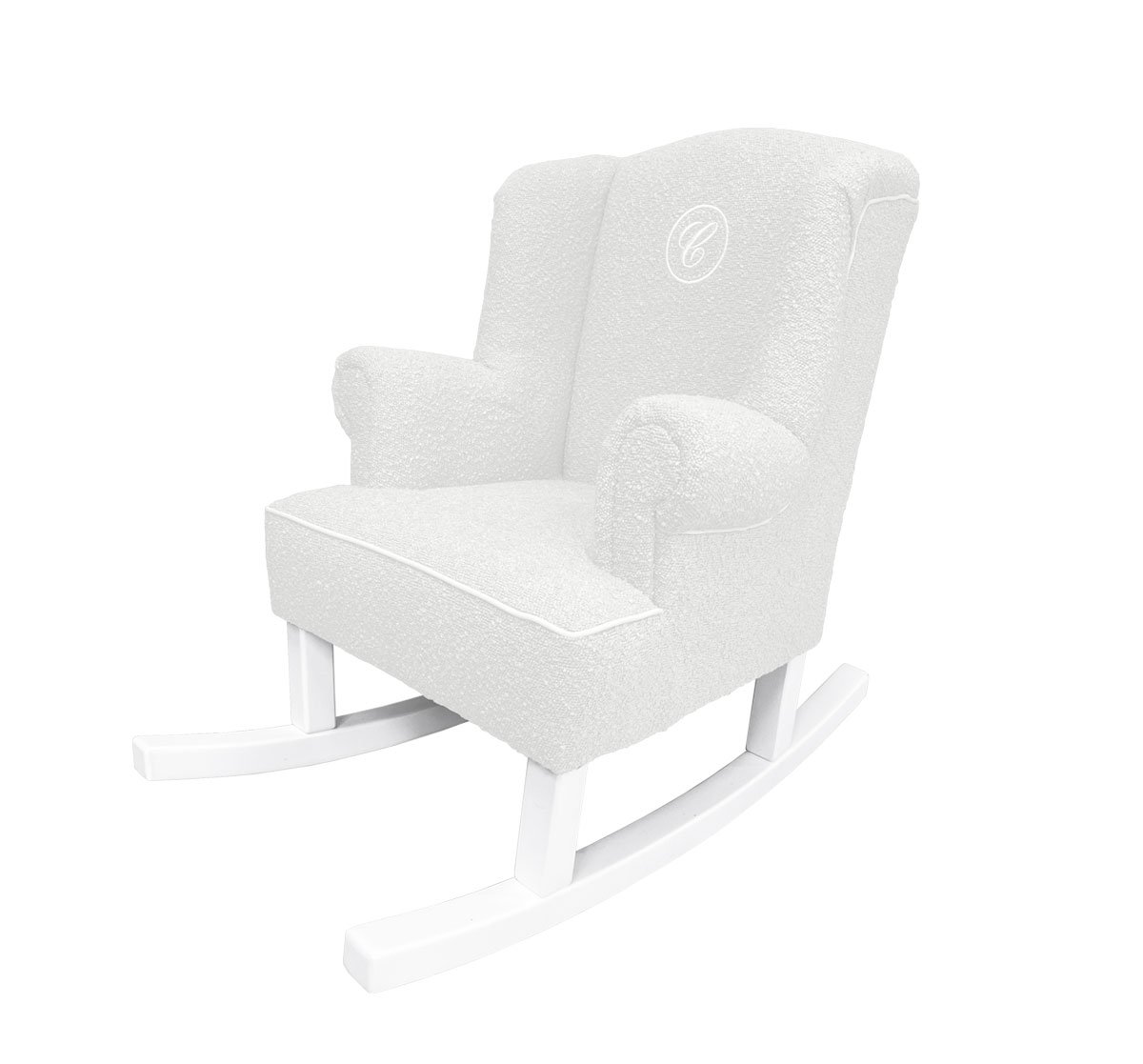 Elegancki, stylizowany fotelik bujany w wersji mini. Pokryty modną tkaniną boucle w kolorze kości słoniowej i ozdobiony dekoracyjnym eleganckim emblematem z literką "C". Piękna, klasyczna forma w wersji mini, wzbogaci pokój każdego dziecka.