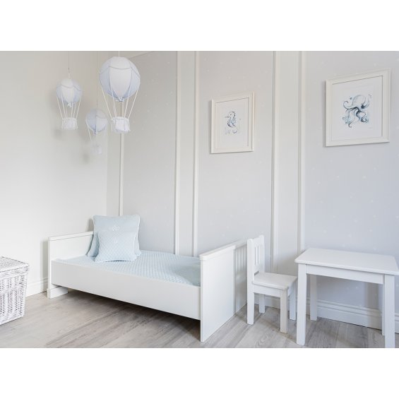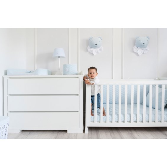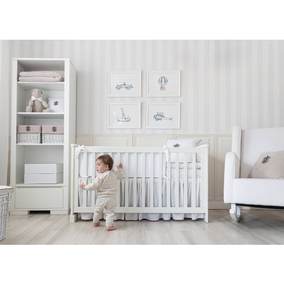 Ekskluzywne łóżeczko w kolorze białym, wykonane w charakterystycznym dla Linii Nowoczesnej, modernistycznym stylu. Po upływie okresu niemowlęcego przeistacza się w łóżeczko dla juniora, co stanowi niewątpliwą zaletę tego produktu. Takie rozwiązanie sprawia, że łóżeczko będzie służyć dziecku przez wiele lat. Produkt doskonale pasuje do innych mebli Linii Nowoczesnej.