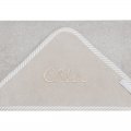 Elegancki ręczniczek uszyty z beżowej tkaniny frotte. Beżowy welurowy kapturek ozdobiony został eleganckim złotym haftem z imieniem Twojego dziecka. Rozmiar ręcznika jest większy niż ogólnie dostępnych na rynku. Nadaje się dla niemowlęcia oraz dla starszego dziecka, dlatego będzie Ci służył przez bardzo długi czas.