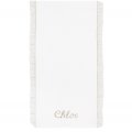 Nakładka na przewijak chroni go przed zmoczeniem. Wykonana z tkaniny frotte, ozdobiona uroczą falbanka i złotym haftem z imieniem Twojego dziecka.