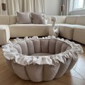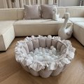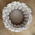 Rewolucyjny, wielofunkcyjny produkt, który posłuży rodzicom przez bardzo długi czas. Najpierw sprawdzi się jako kokon dla niemowląt - w łóżku rodziców, na podłodze, na kanapie, a także podczas podróży. W kolejnym etapie posłuży starszym maluchom jako mata lub gniazdko do zabawy. Wystarczy położyć dziecko na macie z ulubionymi zabawkami lub wsadzić do gniazdka napełnionego piłeczkami lub pluszakami. Miękkie boki ściągnięte taśmą stworzą stabilne boki. Obszycie gniazdka wykonane jest z przyjemnego w dotyku bawełnianego weluru w kolorze beżowym, zostało ozdobione uroczą falbanką.