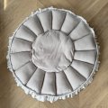 WYMIARY:  gniazdko: średnica 55-60 cm, wysokość: 30 cm (wymiary różnią się w zależności od stopnia ściągnięcia sznureczka); mata po rozłożeniu:  średnica 110 cm