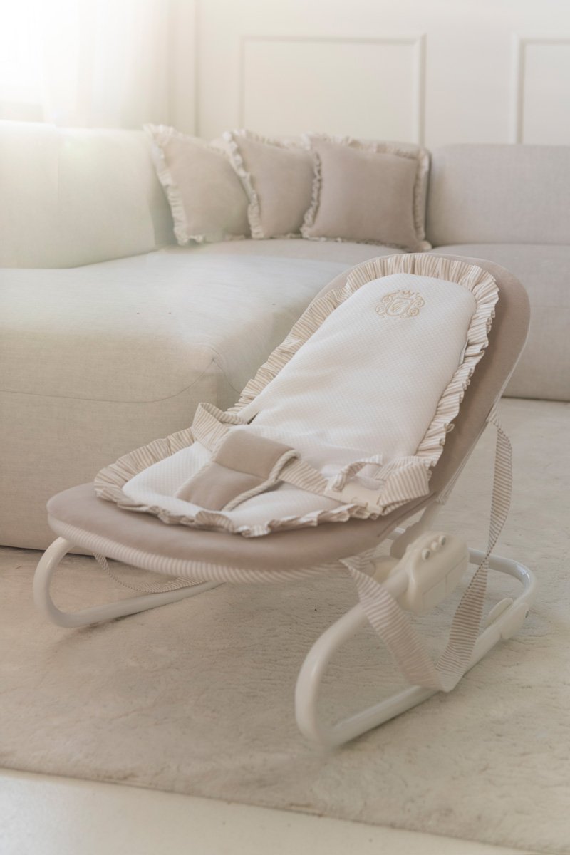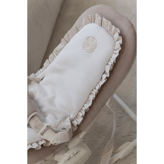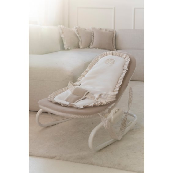 Elegancki leżaczek z materiałowym siedziskiem z kolekcji Golden Sand Leżaczek jest idealnym miejscem do odpoczynku malucha w ciągu dnia i świetnym rozwiązaniem dla tych dzieci, które jeszcze samodzielnie nie siedzą. Wykonany z najwyższej jakości materiałów. Wyposażony w pasy bezpieczeństwa i zdejmowaną nakładkę z falbanką.