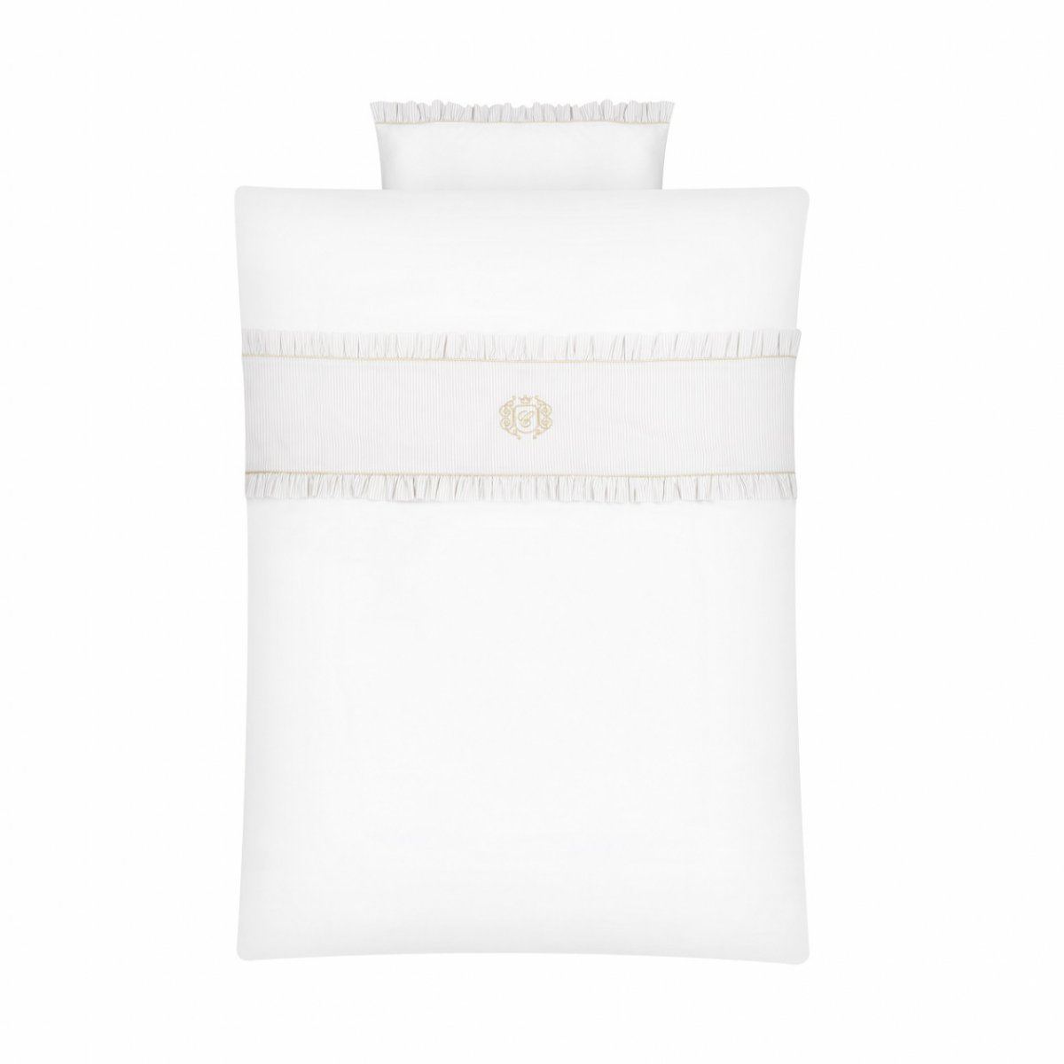 Przepiękna pościel dla chłopca lub dziewczynki. Ozdobiona eleganckim emblematem firmowym. Świetnie pasuje do innych produktów z kolekcji Golden Sand. Idealna na prezent.