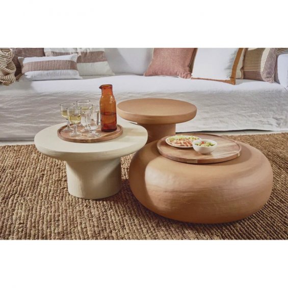 PIASTRO - stolik kawowy - tynk wapienny - DIA 50 x H 40 cm - szarobeżowy