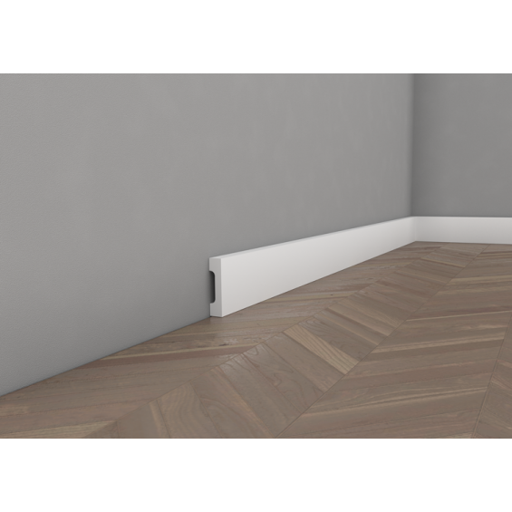 Elegancka lakierowana listwa przypodłogowa. Jest twarda i odporna na uszkodzenia mechaniczne. Posiada gładką powłokę (z farbą podkładową) przygotowaną do malowania dowolną farbą do wnętrz np. akrylową. Jest lekka, twarda, odporna na wodę i wilgoć, odporna na zmywanie, niepalna oraz nietoksyczna. Listwa jest łatwa w montażu. Będzie stanowić eleganckie wykończenie paneli i płytek ceramicznych. Doskonała jako cokół wykończeniowy do różnego rodzaju podłóg. Świetnie ukryje i zamaskuje kable elektryczne.