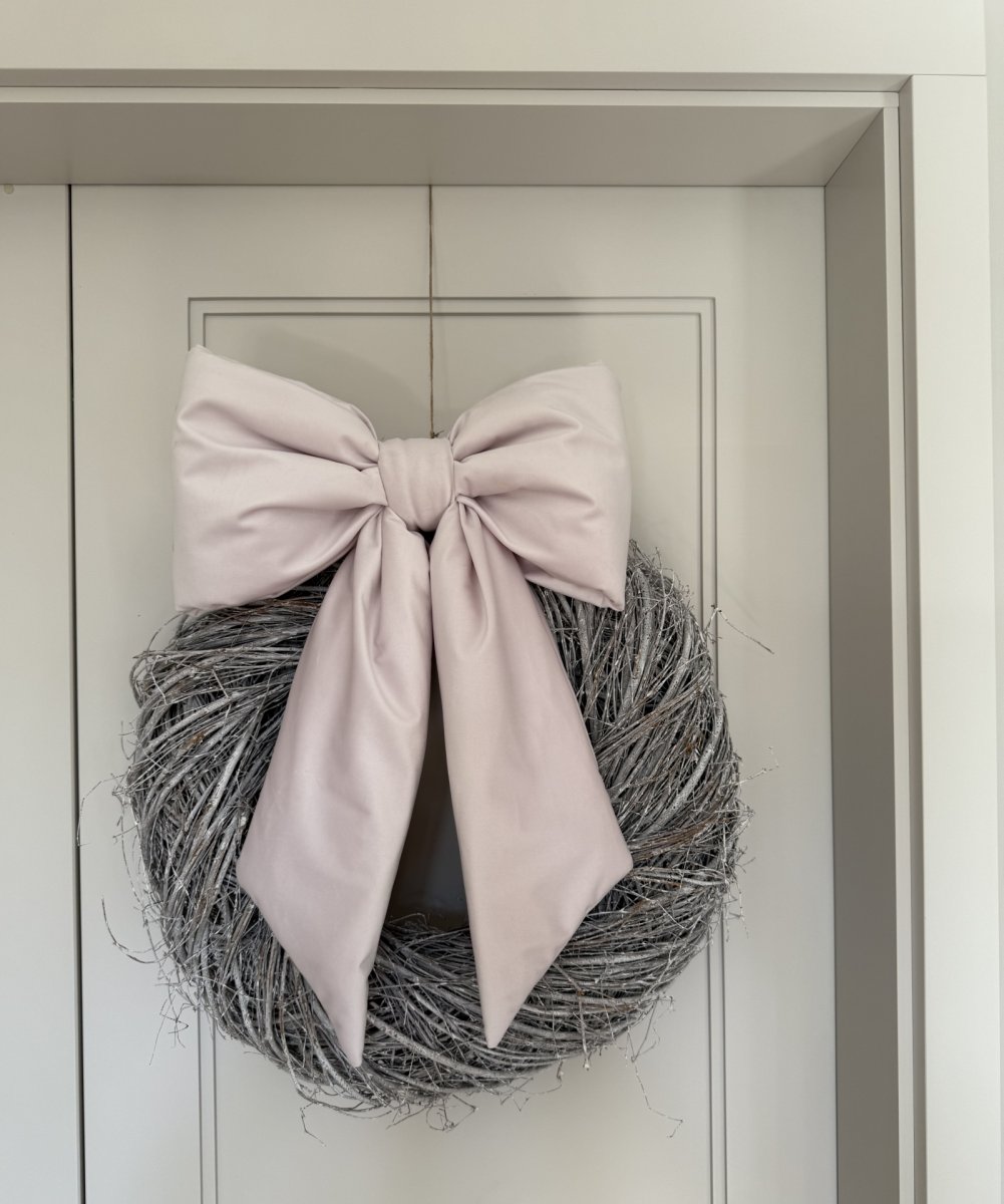 Spektakularna kokarda dekoracyjna w rozmiarze XL uszyta z weluru w kolorze pudrowym. Dzięki usztywnieniu kokarda zawsze utrzymuje perfekcyjny kształt.